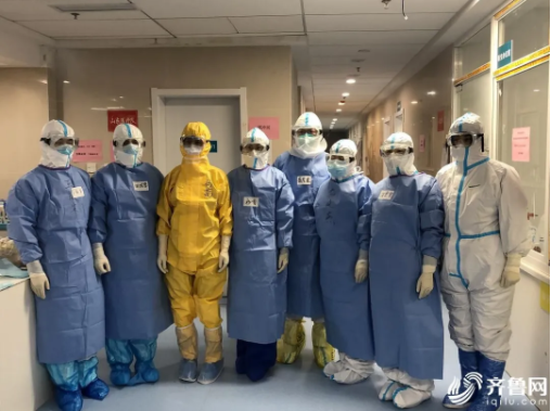即將集體進(jìn)入隔離病房的山東醫(yī)療隊醫(yī)護(hù)人員。